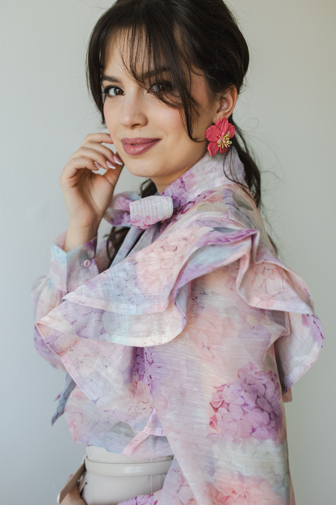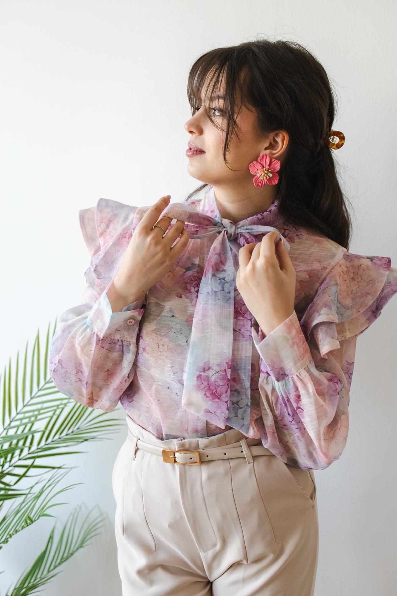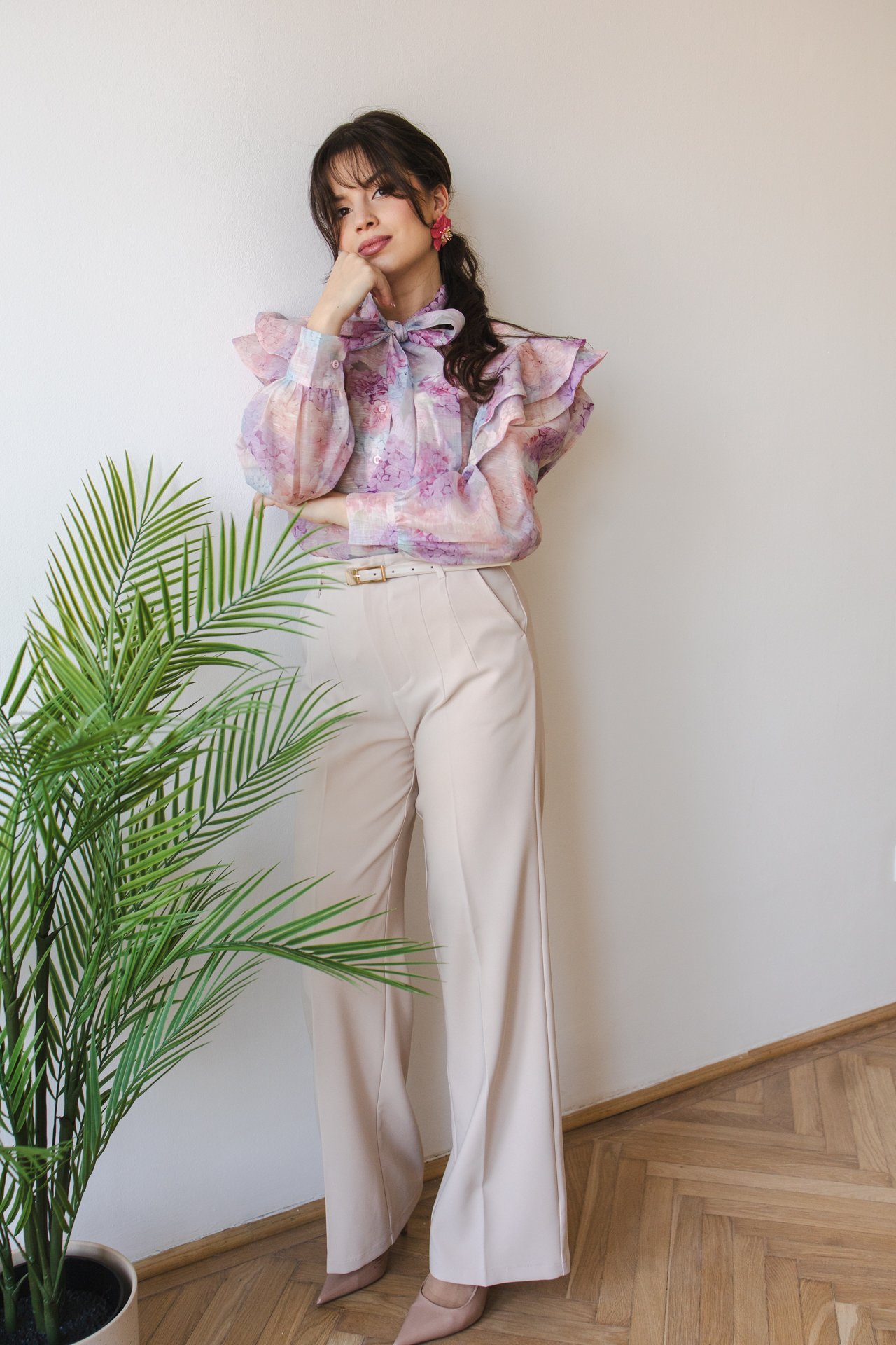 Inventino look virágos rózsaszín blúz
